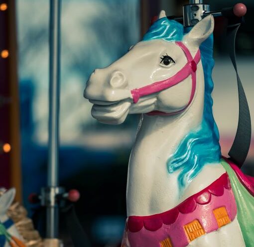 マザー牧場にあったメリーゴーランド。訪れた日は、風が強くかなり寒い日だったけれど、それでも微笑みながら廻っている姿に癒されました